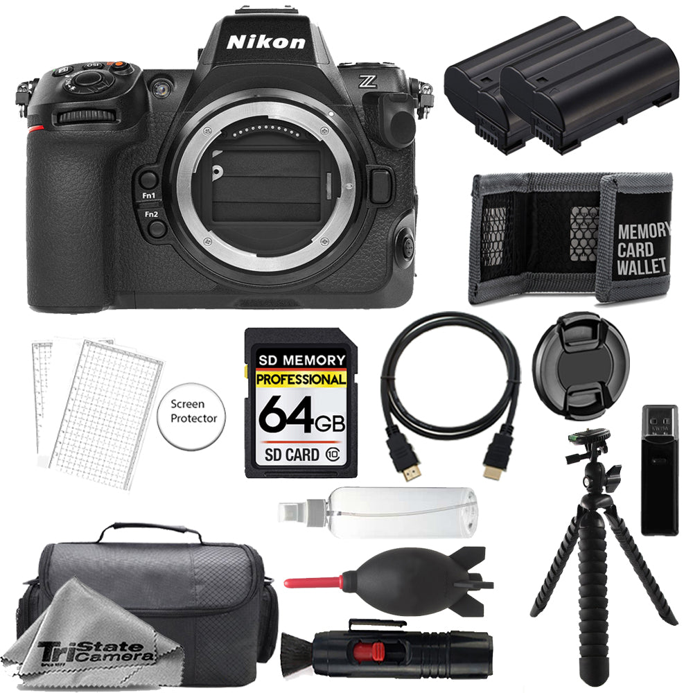 About Nikon Z8 Mirrorless Camera (Body) 64GB + Extra Batt + Tripod- Accessory Kit