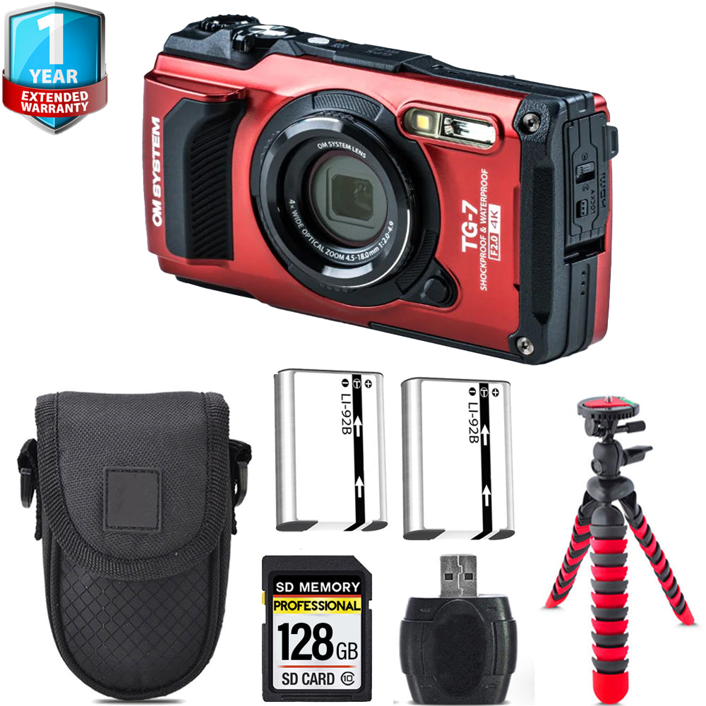 Olympus OM SYSTEM Tough TG-7 Digital Camera (Red) + Extra Battery +1 Yr Warranty + Case -128GB