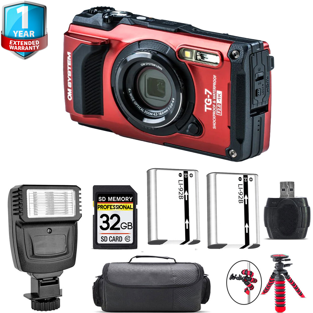 Olympus OM SYSTEM Tough TG-7 Digital Camera (Red) + Extra Battery + 1 Yr Warranty + 32GB