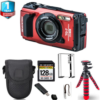 Olympus OM SYSTEM Tough TG-7 Digital Camera (Red) + Spider Tripod + 1 Yr Warranty - 64GB