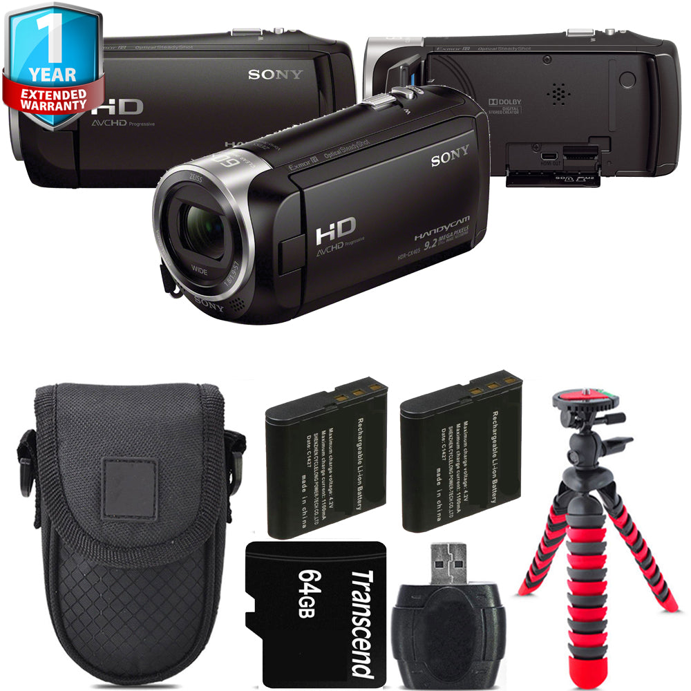 Sony HDR-CX405 HD Handycam + Extra Battery +Tripod + 1 Yr Warranty -64GB Kit