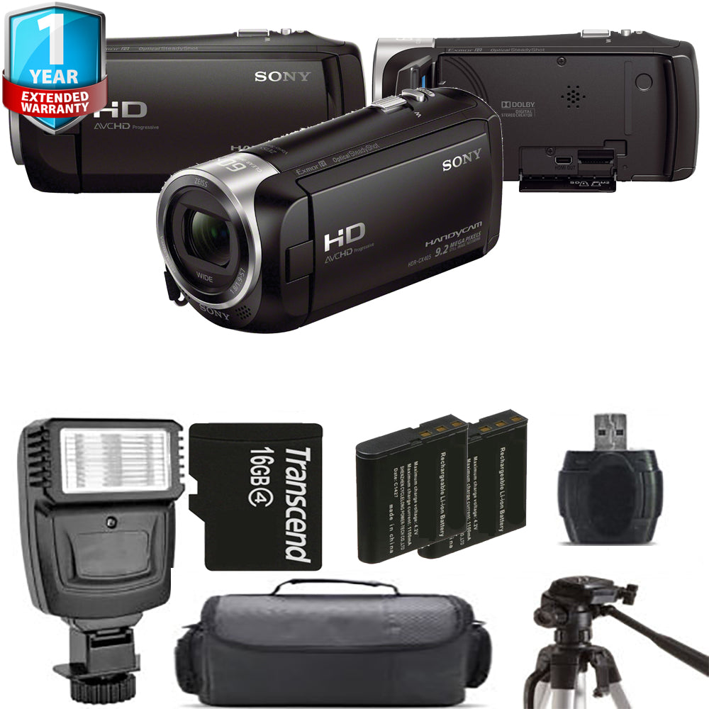 Sony HDR-CX405 HD Handycam + Extra Battery + Flash+ 1 Yr Warranty