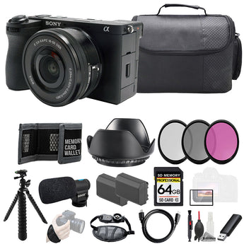 About Sony a6700 w/ 16-50mm Lens + Mic +64GB +Ext Bat+3 PC Filter- Kit