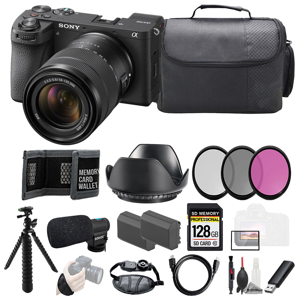 About Sony a6700 w/ 18-135mm Lens + Mic +128GB +Ext Bat+3PC Filter- Kit
