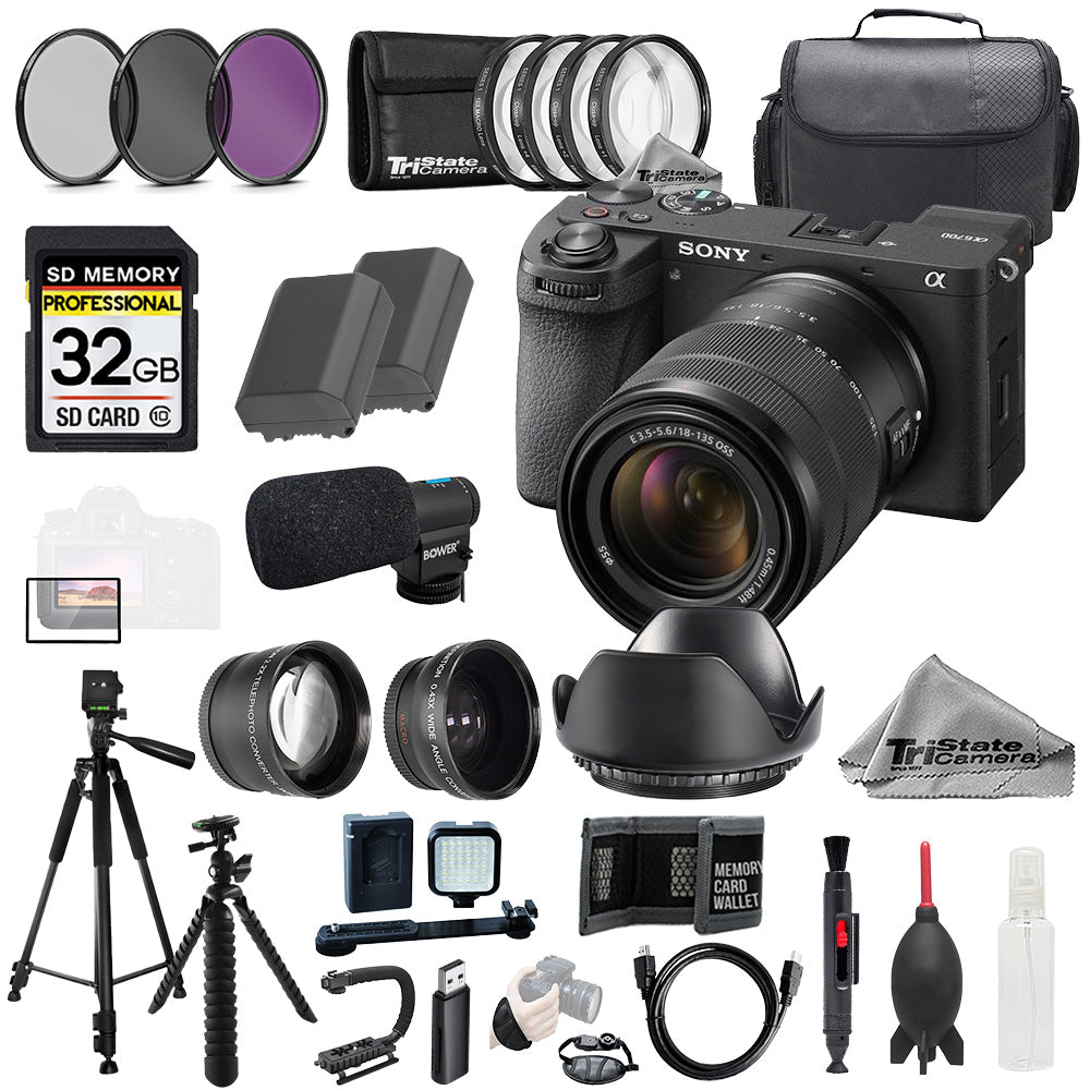 About Sony a6700 w/ 18-135mm Lens + Mic+32GB +9 PC Filtr-MEGA Kit