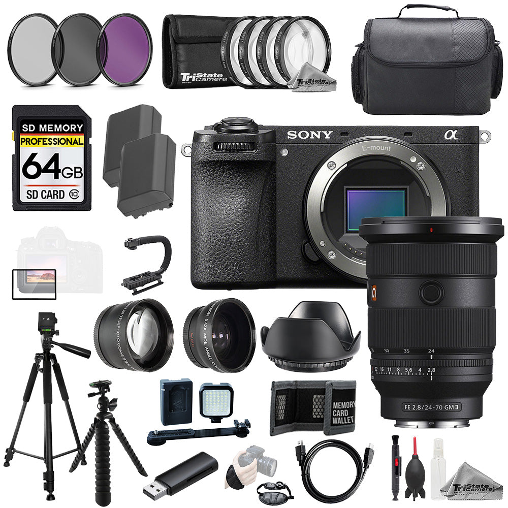 Sony a6700 + 24-70mm f/2.8 GM II Lens+64GB+Ext Bat+9 PC Filter-MEGA Kit