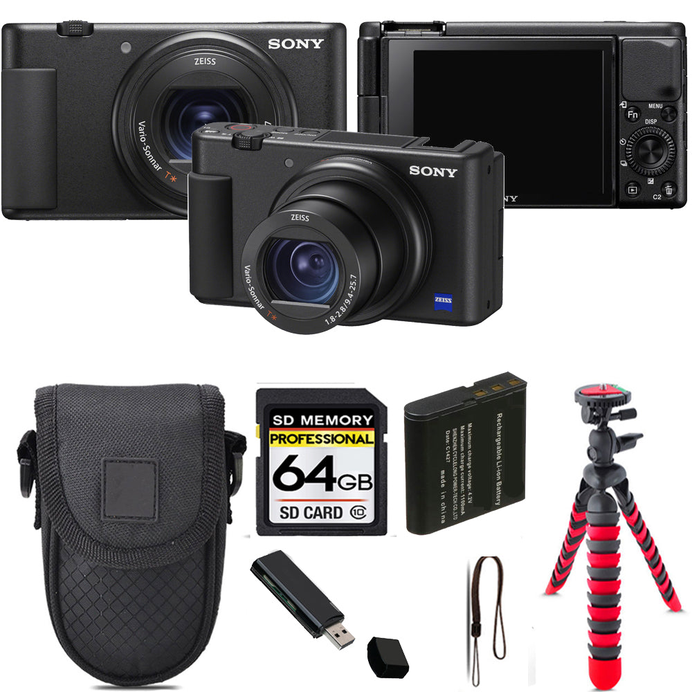 Sony ZV-1 Digital Camera (Black) + Tripod + Case - 64GB Kit