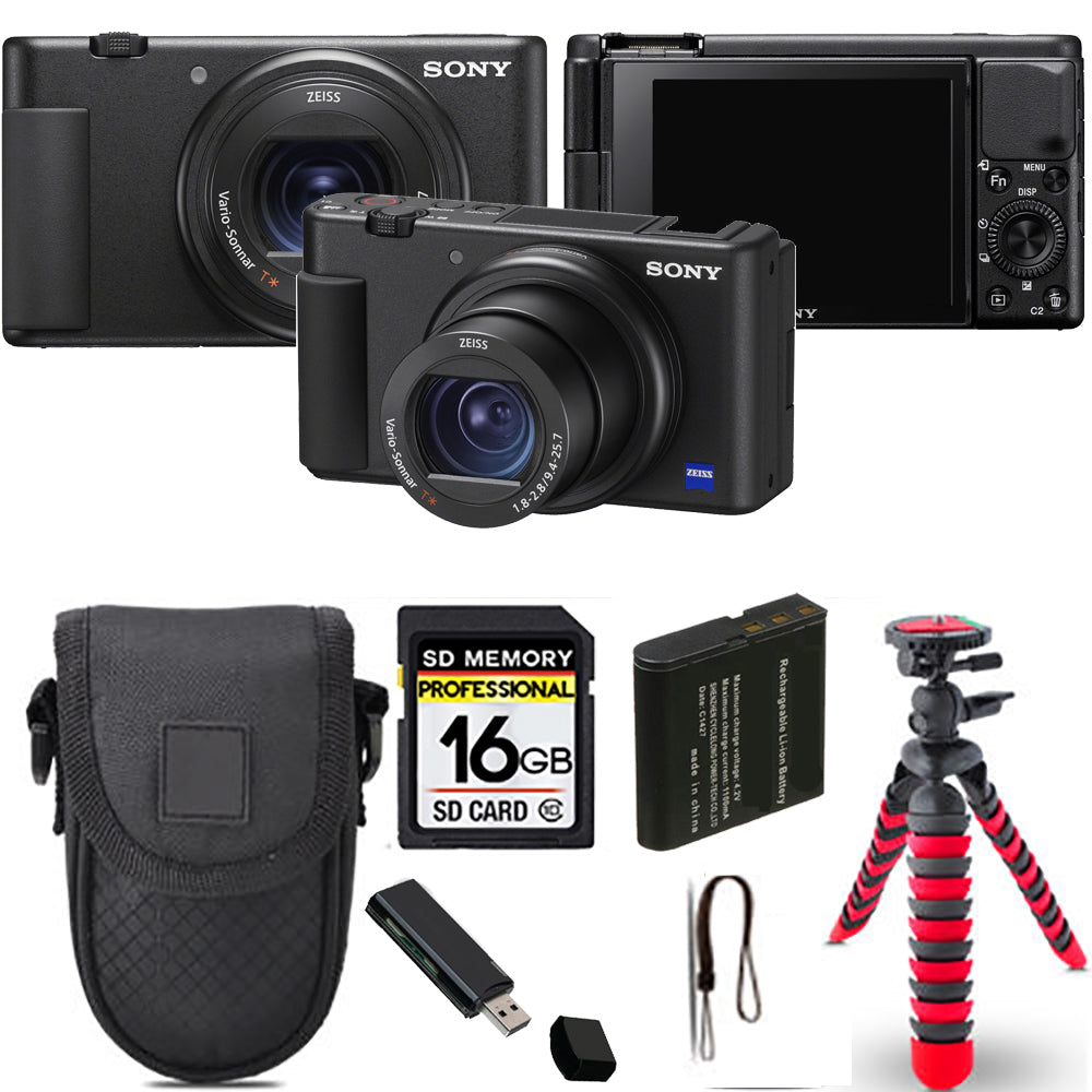 Sony ZV-1 Digital Camera (Black)+ Spider Tripod + Case - 16GB Kit