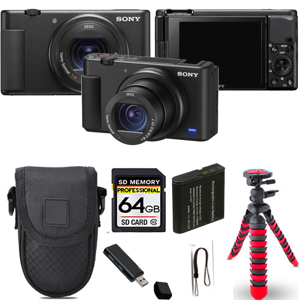 Sony ZV-1 Digital Camera (Black)+ Spider Tripod + Case - 64GB Kit