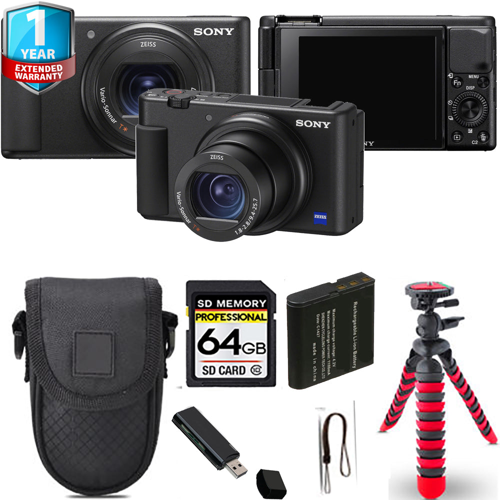 Sony ZV-1 Digital Camera (Black) + Spider Tripod + 1 Yr Warranty - 64GB