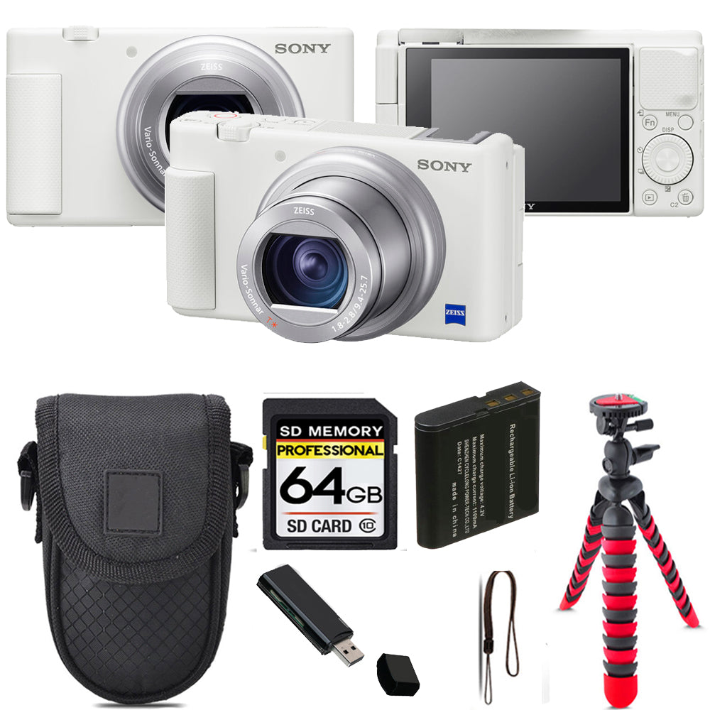 Sony ZV-1 Digital Camera (White) + Tripod + Case - 64GB Kit