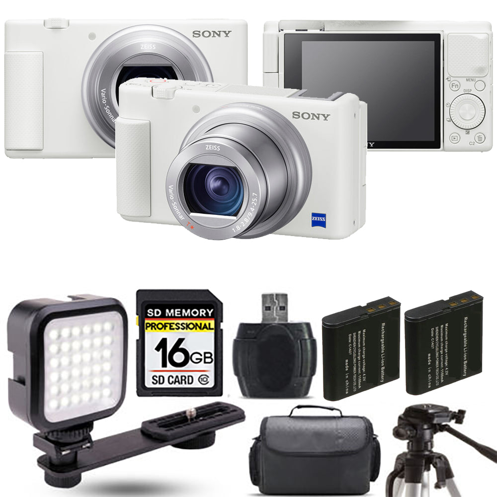 Sony ZV-1 Digital Camera (White) + Extra Battery + LED - 16GB Kit