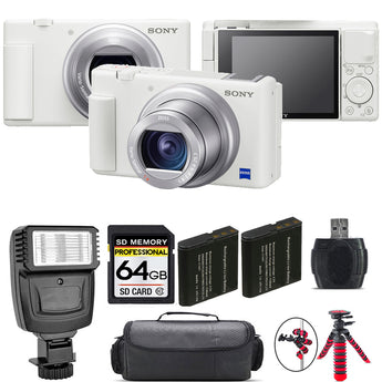 Sony ZV-1 Digital Camera (White) + Extra Battery + Flash - 64GB Kit