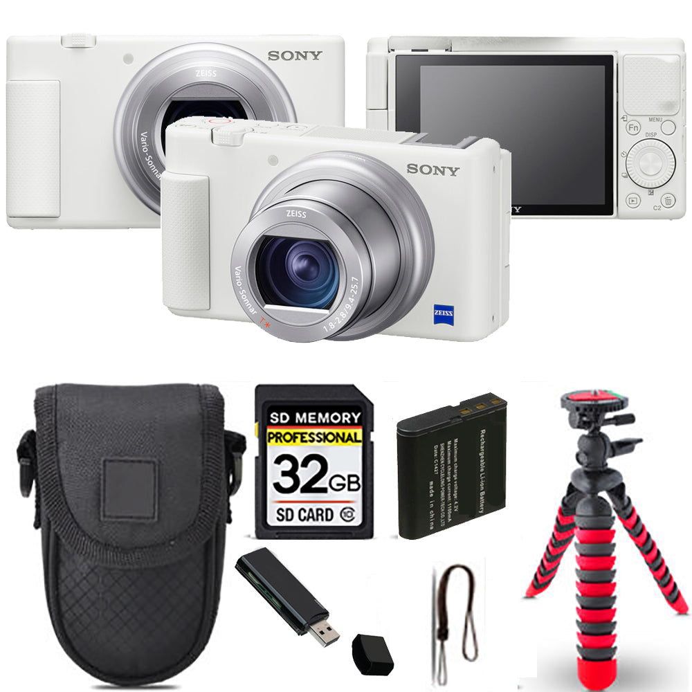 Sony ZV-1 Digital Camera (White) + Spider Tripod + Case - 32GB Kit
