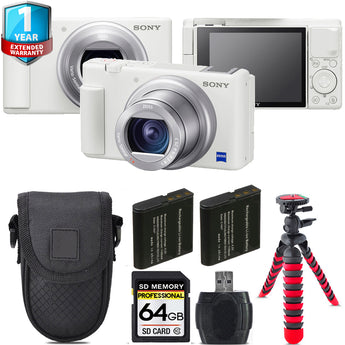 Sony ZV-1 Digital Camera (White) + Extra Battery +Tripod + 1 Yr Warranty -64GB Kit