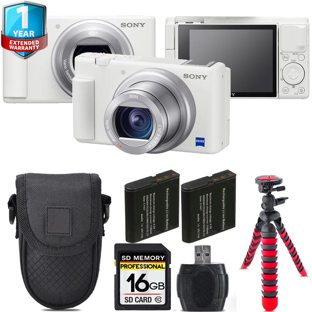 Sony ZV-1 Digital Camera (White) + Extra Battery +1 Yr Warranty + Case -16GB