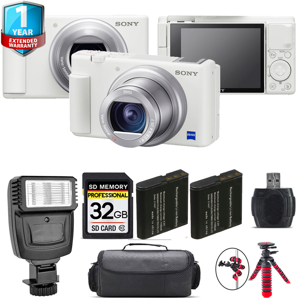Sony ZV-1 Digital Camera (White) + Extra Battery + 1 Yr Warranty + 32GB