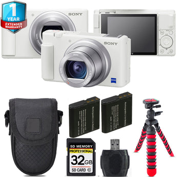 Sony ZV-1 Digital Camera (White) + 1 Yr Warranty +Tripod + Case -32GB Kit