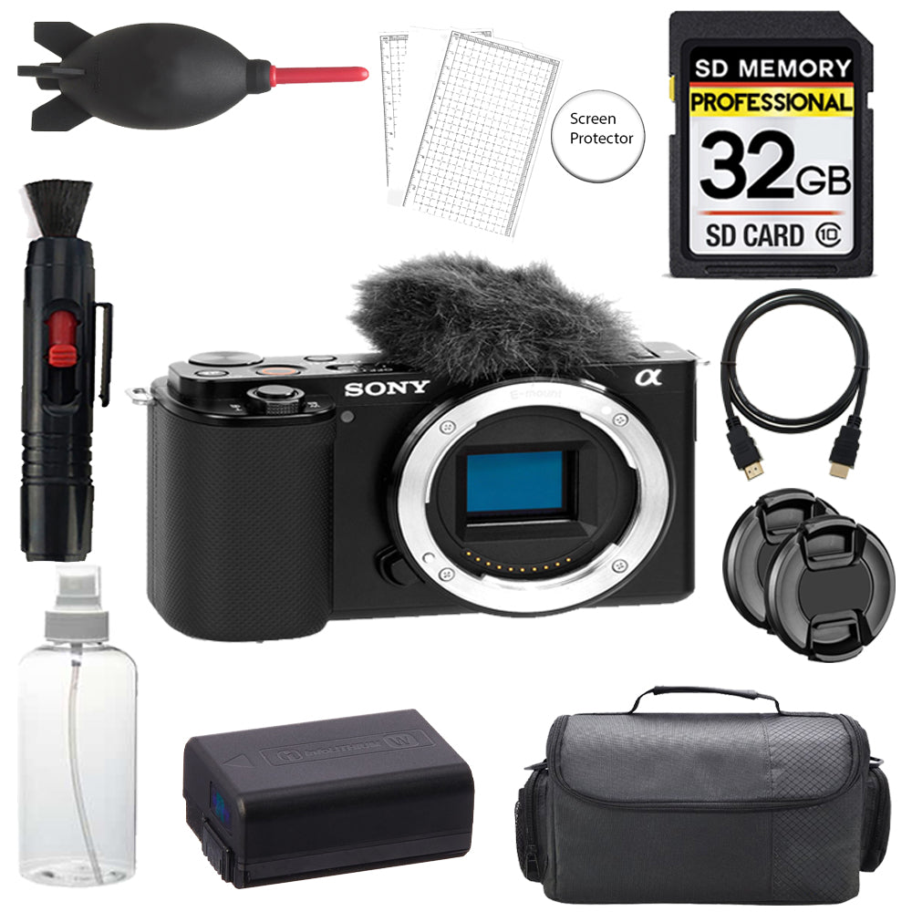 Sony ZV-E10 Mirrorless Camera (Black) + 32GB + Bag+ Screen Protector- Basic Kit