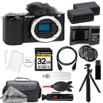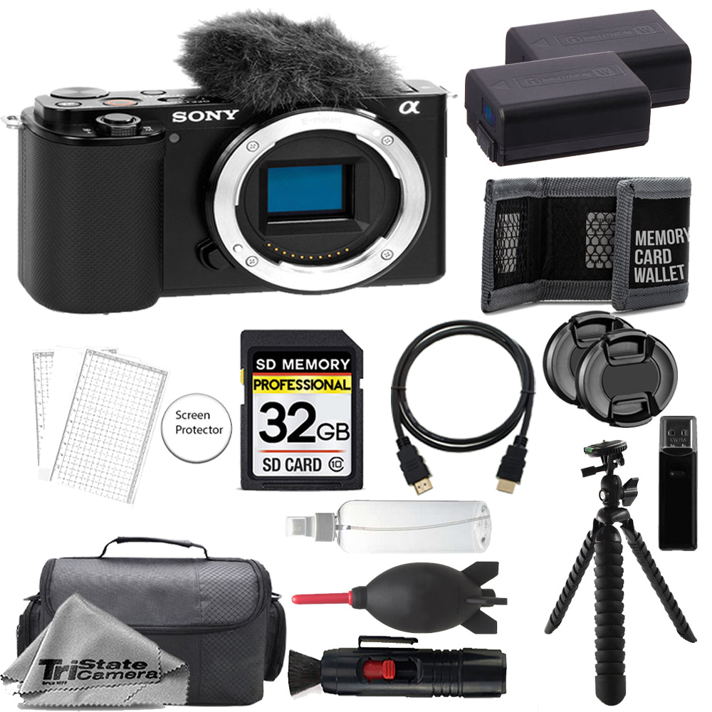 Sony ZV-E10 Mirrorless Camera (Black) + 32GB + Extra Battery+ Tripod- Accessory Kit