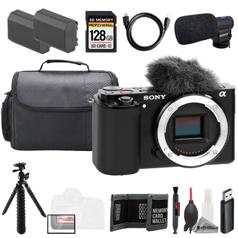 Sony ZV-E10 Black (Body) + Mic + 128GB + Extra Battery+ Tripod- Accessory Kit