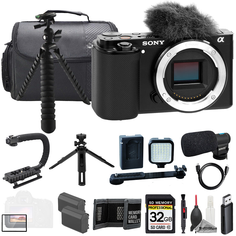 Sony ZV-E10 Black (Body) + Mic + 32GB + Extra Battery+ LED Flash- ULTIMATE Kit