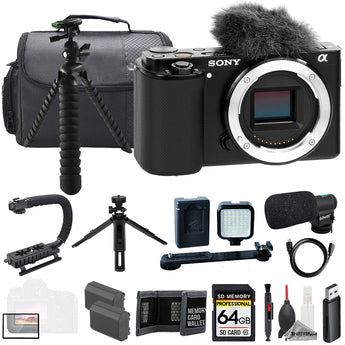 Sony ZV-E10 Black (Body) + Mic + 64GB + Extra Battery+ LED Flash- ULTIMATE Kit