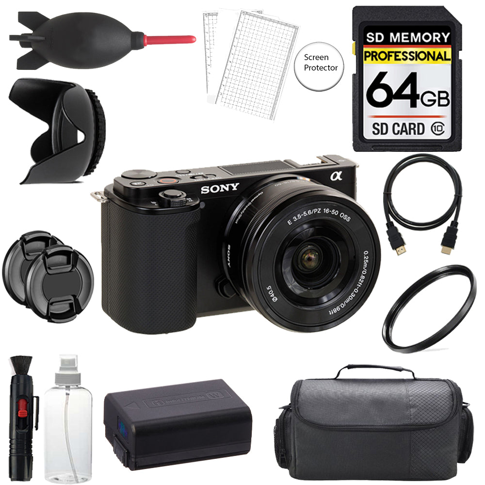 Sony ZV-E10 Mirrorless Camera +16-50mm Lens (Black) + 64GB + Bag+ UV Filter- Basic Kit