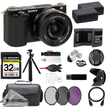 Sony ZV-E10 Mirrorless Camera +16-50mm Lens (Black) + 32GB + Extra Battery+ 3 PC Filter- Accessory Kit