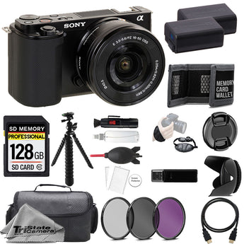 Sony ZV-E10 Mirrorless Camera +16-50mm Lens (Black) + 128GB + Extra Battery+ 3 PC Filter- Accessory Kit