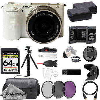 Sony ZV-E10 Mirrorless Camera +16-50mm Lens (Silver) + 64GB + Extra Battery+ 3 PC Filter- Accessory Kit