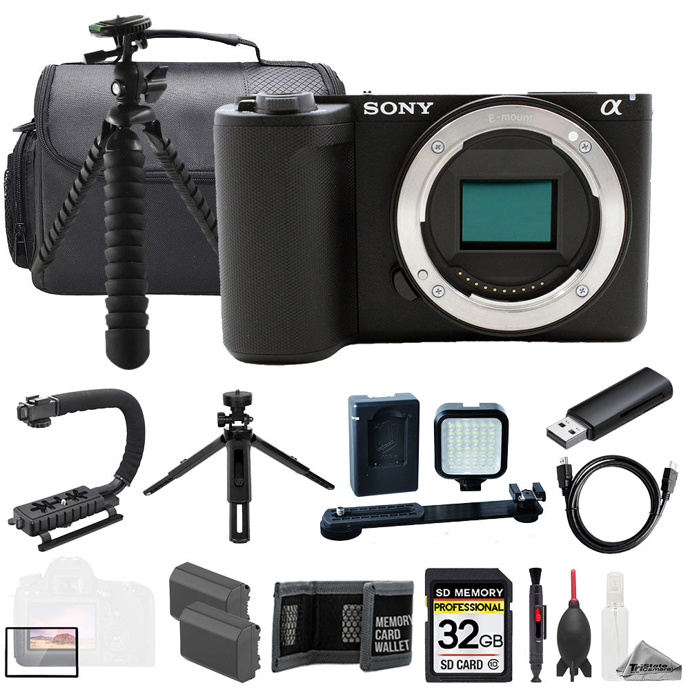 Sony ZV-E10 II Mirrorless Camera (Black) + 32GB + Ext Batt+ LED Light- ULTIMATE Kit