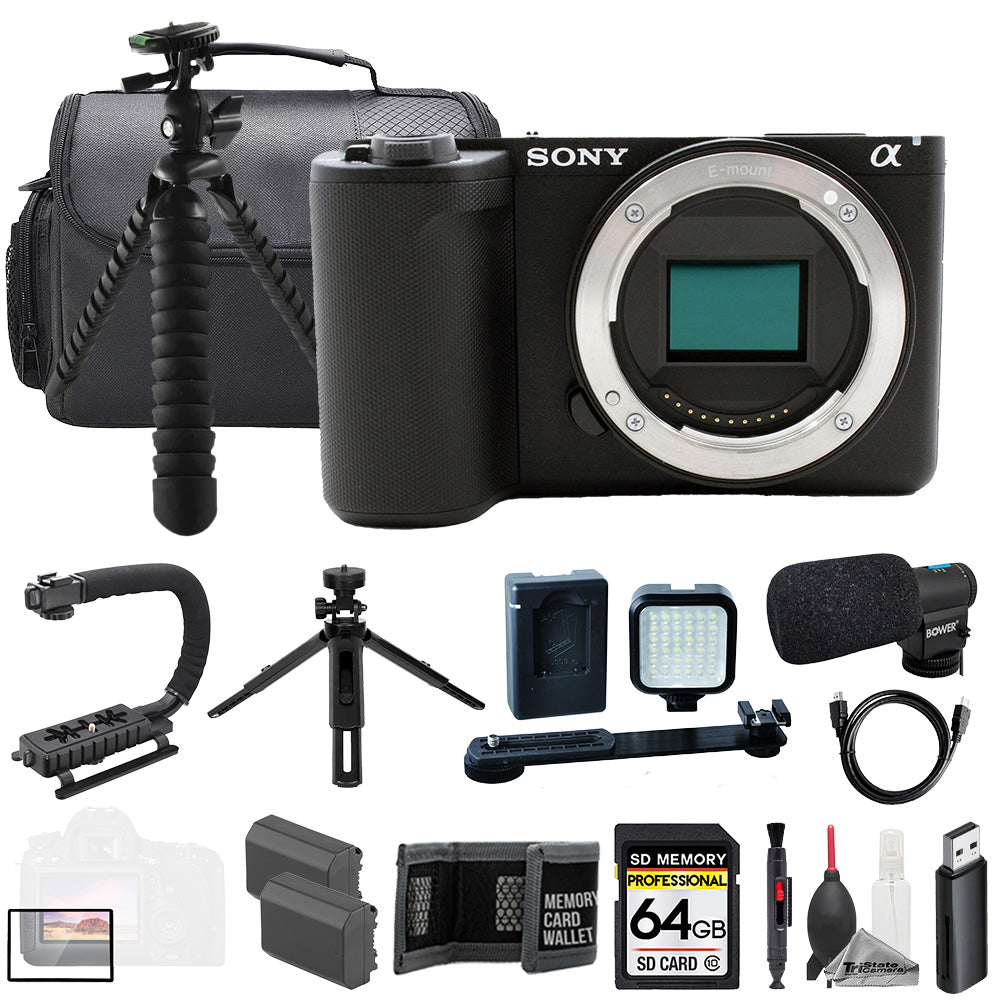 Sony ZV-E10 II Mirrorless Camera (Black) + Mic + 64GB + Extra Battery+ LED Flash- ULTIMATE Kit