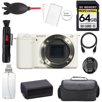 Sony ZV-E10 Mirrorless Camera Body (White) + 64GB + Bag+ Screen Protector- Basic Kit