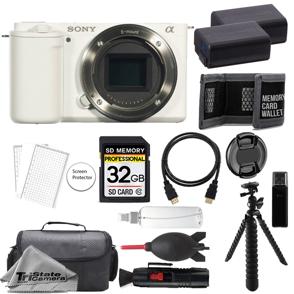 Sony ZV-E10 Mirrorless Camera Body (White) + 32GB + Extra Battery+ Tripod- Accessory Kit
