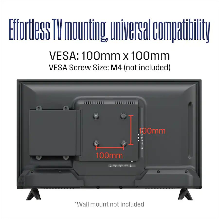 The TV also comes equipped with additional ports and inputs, including - but not limited to - Optical Digital out for enhanced multi-channel audio and a coax port for cable boxes and antennas. With a slim, compact design, this 24" non-smart TV with DVD player built-in is ideal for small living spaces, such as the office, garage, kitchen, or kids' bedroom; it even makes for a great RV camper TV (12V inverter required). It's VESA compatible and light enough to be mounted on the wall for additional space-saving convenience.